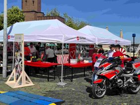 Von den Maltesern waren an dem Tag rund 20 Helfer:innen aus dem Haupt- und Ehrenamt im Einsatz, die sich um den Standaufbau und die Standbesetzung gekümmert haben und so auch für die vielfältigen Fragen der Passanten zur Verfügung standen. Dank des guten Wetters und der guten Stimmung insgesamt hat es allen viel Freude gemacht und so danken wir allen hier an dieser Stelle nochmals herzlich für ihren Einsatz an dem Tag!