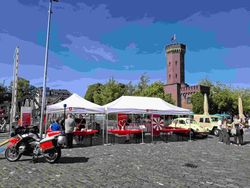 mehrMalteser-Stand gut sichtbar direkt am Eingang vor dem Schokolanden-Museum