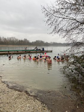30 unerschrockene Mitglieder der Lippischen Kaltbadevereinigung gingen für den guten Zweck bei knapp 7 Grad Wassertemperatur im Waddenhausener Baggersee baden. Erst nach mehr als 10 Minuten verließen die ersten das kühle Nass. Durch die Startgebühren für die Kaltbade-Challenge und dank weiterer Spenden kamen für den Wärmebus der Malteser Lage bis heute über 2.800 Euro zusammen.