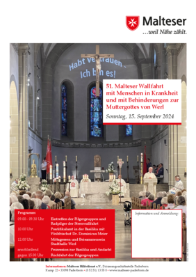 Aus dem Pastoralverbund Lippe-West werden die Malteser gemeinsam mit Pilgerinnen und Pilgern und Malteser Seelsorger Pastor Jürgen Hülseweh in einem Bus nach Werl fahren. Die Teilnehmer werden von den Maltesern an vier Haltestellen (Bad Salzuflen, Lage, Leopoldshöhe-Asemissen und Oerlinghausen) abgeholt und den ganzen Tag begleitet. Natürlich darf auch eine eigene Begleitperson mitfahren.