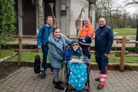 Das Malteser-Team mit Leonid, seiner Mutter und dem Fachpfleger der Kinderklinik Siegen bei den Giraffen.