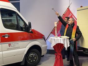 Wie es bei den Maltesern Tradition ist, wurde der KTW B und alle, die mit ihm unterwegs sein werden, von Monsignore Andreas Kurte gesegnet. „Aber ein Fahrzeug ist nichts ohne die Menschen, die sich engagieren und für die Hilfe am Nächsten antreten“, betonte der Ortsbeauftragte und würdigte das Engagement der rund 80 Mitglieder des Ortsverbands, von denen 40 aktiv im Katastrophenschutz und Sanitätsdienst tätig sind.