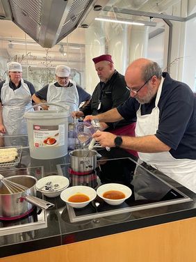 In der Dr. Oetker-Versuchsküche gab es viele Informationen über den Einsatz von Convenience-Produkten, die der Sortimentsbereich Dr. Oetker-Professional für die Gastronomie und Großküchen bereithält. „Egal, ob eine Pizza, eine Suppe, eine Soße oder für ein Dessert – wir haben viele hilfreiche Tipps erhalten“, sagt Brandes. Eine Pizza- und Pudding-Verkostung durfte da natürlich nicht fehlen. Die anschließende Führung durch die Ausstellung der Dr. Oetker-Welt rundete den Tag für die Malteser Helfer aus Lage/Lippe, Paderborn, Altenbeken-Buke, Olpe, Werl/Soest, Langenfeld und Gütersloh in der Puddingstadt Bielefeld ab. Mit dabei auch ein Feldkoch und eine Feldköchin des Deutschen Roten Kreuz aus Detmold.