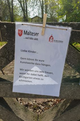 Der Malteser Hilfsdienst arbeitet mit der Kirchgemeinde zusammen, laminiert die Bilder und hängt sie zurück, damit die Kunstwerke im Kirchgarten lange erhalten bleiben. Das Projekt soll den Kirchgarten verschönern und Spaziergängern eine Freude bereiten.