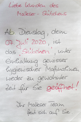Am kommenden Dienstag, den 7. Juli 2020 öffnet das Stübchen von 11 bis 17 Uhr wieder für den Publikumsverkehr, allerdings noch unter der Einhaltung von Abstandsregelungen und Hygienevorschriften. „Wir rechnen tatsächlich mit einem großen Andrang, bitten aber um Verständnis, dass wir das Stübchen nicht wie gewohnt öffnen können“, berichtet Kathrin Böhm. Die Kundinnen und Kunden werden gebeten ihren eigenen Mundschutz mitzubringen und in den Räumen zu tragen. Aufgrund der Abstandsregelungen werden nur 5 bis 6 Personen gleichzeitig das Stübchen betreten dürfen. Es kann also zu Wartezeiten kommen.