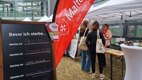 Vereine und Verbände in der Stadt stellen an diesem Tag ihre Angebote vor. Das gilt natürlich auch für die Malteser. Der ambulante Hospiz- und Trauerbegleitungsdienst und die Malteser Jugend haben ihre Arbeit und die Möglichkeiten ehrenamtlichen Engagements vorgestellt - als Hospizbegleiter, Gruppenleiter oder in der Nachhilfe für Familien, die sich in einer schwierigen Lebenslage befinden. Mit einer Fotoaktion und Aktionsspielen konnten die Studierende den Verband kennenlernen, ins Gespräch kommen und sich ausprobieren.