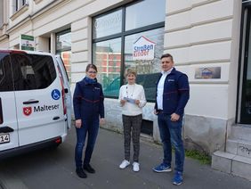 Leipzig. Am Donnerstag, 09.04.2020 haben Mitarbeitende der Malteser eine Wagenladung voll Hygieneartikel und Geld an die Anlaufstelle „Haus Tante E“ des Straßenkinder e.V. in Leipzig übergeben.