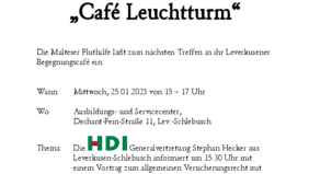 „Flutbetroffen sind aber nicht nur Menschen, deren Keller oder Wohnräume geflutet wurden,“ erläutert Oliver Hinrichs, Stadtbeauftragter der Malteser Leverkusen. „Auch wer keinen mittelbaren Schaden erlitten hat, aber zum Beispiel seinen Arzttermin, den Sportkurs oder andere Aktivitäten wegen Überflutung der Räumlichkeiten nicht wahrnehmen konnte, ist ‚flutbetroffen‘. Das wird oft gar nicht so wahrgenommen.“ Nebst Kaffee und Gebäck können sich die Gäste auch auf einen Vortrag freuen: Um 15.30 Uhr informiert die HDI Generalvertretung aus Schlebusch mit Blick auf das Hochwasserereignis 2021 über das allgemeine Versicherungsrecht und steht für allgemeine Fragen zur Verfügung.