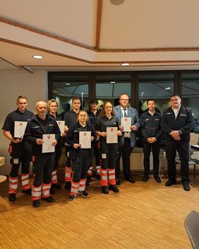 Anschließend wurden alle Malteser nach vorne gerufen, die am Hochwassereinsatz 2023/2024 teilgenommen haben. Diesen wurde die Hochwasser Ehrennadel vom Land Niedersachsen überreicht