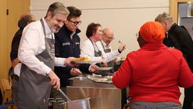 Einen besonderen dritten Adventssonntag hat die Kathedralgemeinde St. Sebastian ermöglicht: Der Versorgungszug des Malteser Katastrophenschutzes durfte für ein gemeinschaftliches Adventsmittagessen kochen. Der verlockende Duft von Grünkohl, Kartoffeln und Kassler lockte nach dem Gottesdienst die Gäste und Familien in den Gemeindesaal, wo auch Schnitzel mit Pommes und eine vegetarische Alternative angeboten wurden. Das gemeinsame Essen bot den idealen Rahmen, um in geselliger Runde zusammenzukommen und sich auf die Adventszeit einzustimmen.