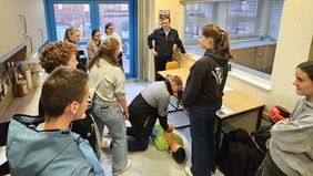 Nur diesmal nicht. Der Wohnhausbrand war nämlich ein vorbereitetes Szenario für die Jugendlichen. Und Markus war eingeweiht. Die Sorge einiger, sich im Stress nicht mehr an die W-Fragen zu erinnern, war übrigens unbegründet. Markus und sein Team in der integrierten Leitstelle fragen alles ab, was sie wissen müssen. Zuerst, wo der Notfall passiert ist. Schon während des Gesprächs alarmieren sie die Rettungsmittel per Mausklick. 24 Stunden am Tag, 365 Tage im Jahr.