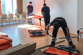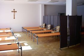 Auch das Bischof-Weskamm-Haus stellt sich auf den Ernstfall einer Corona-Infektion im Altenpflegeheim ein. Hierfür bauten gestern am Montag, den 23. März 2020 Helfer des Katastrophenschutzes des Malteser Hilfsdienstes im Hermana-Saal des Pflegeheims 15 Notbetten und vier Trennwände auf. Diese sollen im Falle einer verhängten Quarantäne für das Pflegepersonal als Ruhe- und Schlafraum dienen.