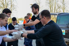 Schon am Vormittag wurde das Mittagessen sehnsüchtig erwartet. Als dann der Transporter die Malteser Wache an der Uniklinik erreichte, gab es sogar noch eine Überraschung: Ausgeliefert wurde heute von Christian Beck vom 1. FCM, M2-Chef Marcus Krümmling und dessen Sohn.
