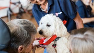 Beim Besuchsdienst mit Hund treffen Ehrenamtliche der Malteser mit ihrem eigenen Hund auf ältere und/oder pflegebedürftige Menschen. Besuchshunde können die Lethargie und Einsamkeit zurückgezogener Menschen durchbrechen und jungen, alten, behinderten und kranken Menschen Freude bereiten.