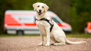 Über Eyla: Eyla ist ein sehr zuverlässiger Rettungshund. Die Labrador-Hündin hat viel Energie und rennt in schnellem Tempo durch das Gelände auf der Suche nach Personen. Das Finden und Anzeigen durch lautstarkes Bellen meistert sie problemlos. Sie setzt das, was von ihr verlangt wird, in den unterschiedlichsten Trainings- und Einsatzsituationen vorzüglich um. Durch die jahrelange Ausbildung kennt sie diverse Anzeigesituationen und freut sich jedes Mal über eine neue Futter-Überraschung in ihrer Dose beim Finden von Personen. Eine der wichtigsten Grundvoraussetzungen auf dem Weg zu einem guten Rettungshund ist, dass der Hund die für ihn geeignete Belohnung erhält – entweder etwas zu fressen oder ein Spiel, damit der Hund für die anstrengende Arbeit belohnt wird.