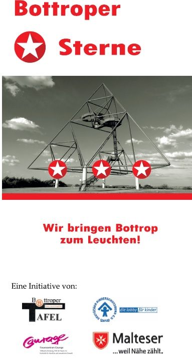 Durch eine Spende an die Initiative "Bottroper Sterne" erhält man seinen persönlichen Stern und unterstützt gleichzeitig vier großartige Hilfsprojekte in Bottrop. Die Malteser im Bistum Essen übernehmen als Initiator die Organisation der "Bottroper Sterne" und garantieren eine 100%ige Weiterleitung der Spendengelder an die vier Partnerorganisationen zu gleichen Teilen. Die Stadt Bottrop übernimmt die Schirmherrschaft und begleitet das Projekt.