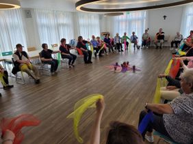 Freude und Leichtigkeit waren daher auch bei unserer regelmäßigen Veranstaltung „Tanzen im Sitzen“ im Kaplan-Poether-Haus in Zweckel zu spüren. Bei unterschiedlichen Themen- und Gymnastiktänzen war diesmal für jeden etwas dabei.