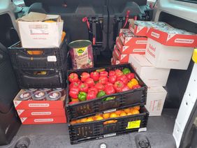 Heute bekamen wir einen Anruf des DRK-Geschäftsführers Stefan Walter. Das DRK betreibt ja bekanntlich in Gladbeck die Tafel und dort hatte man auch an uns und unsere Schützlinge aus der Wohnungslosenszene gedacht. So konnten wir einen Transporterkofferraum voller guter Sachen wie Äpfel, Apfelsinen, Mandarinen, Paprika, Rote-Beete-Beilage, Baked-Potatoes, Rotkohl und weiterer leckerer Dinge vom DRK-Stützpunkt abholen. Einen Großteil der Sachen werden wir am kommenden Samstag an unserem Wärmebus verteilen, anderes wird bei zukünftiger Essenszubereitung Verwendung finden.