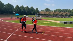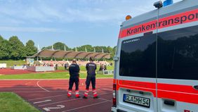 Während die jungen Athletinnen und Athleten in den Disziplinen Sprint, Weitsprung, Weitlauf, Kugelstoßen und Ausdauerlauf ihr Bestes gaben, sorgten unsere ehrenamtlichen Einsatzkräfte für die sanitätsdienstliche Sicherheit bei der Veranstaltung. Die sportlichen Leistungen der Schülerinnen und Schüler motivierten auch unsere Einsatzkräfte, außer Konkurrenz die ein oder andere Runde zu laufen.