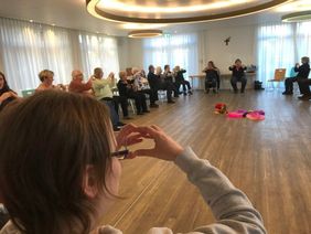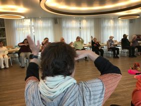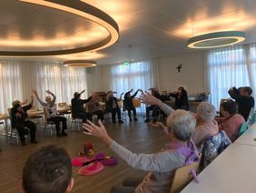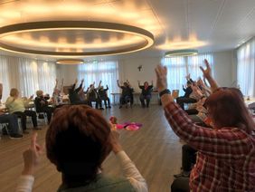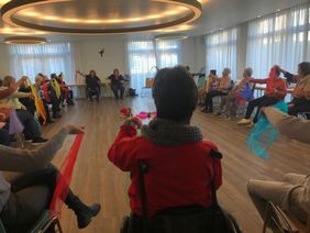 Viel Spaß und gute Laune waren bei unserem Treffen zum Tanzen im Sitzen am vergangenen Sonntag wieder garantiert. Die vereinzelten Regentropfen, die manch einem von uns auf dem Hinweg begegnet sind, tanzten wir einfach weg und sahen am Ende unseres Regenliedes einen schönen Regenbogen. Neben Gymnastiktänzen und dem Lied „The Lion Sleeps Tonight“, das mittlerweile nicht mehr fehlen darf, stand diesmal „Butterfly“ von Danyel Gérard auf dem Programm. Den Nachmittag ließen wir dann bei guten Gesprächen, Kaffee, Tee und Kuchen ausklingen.