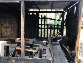 Im März war der Holzunterstand am Festplatz, Treffpunkt für die Gladbecker Wohnungslosenszene, als Folge einer Brandstiftung Raub von Flammen geworden. Wir sind mit unserem Wärmebus an jedem Samstag dort und konnten uns den Schaden völlig entsetzt aus nächster Nähe ansehen. Die Enttäuschung und das Unverständnis war groß bei den Menschen, die selbst kaum etwas haben und sich dort regelmäßig treffen.