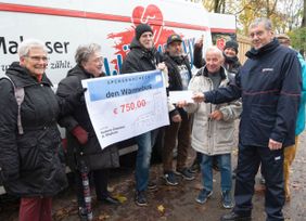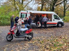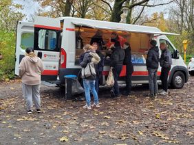 Einige kältefeste Mitglieder der evangelischen Kirchengemeinde Gladbeck, Kantorei Zweckel, besuchten uns gestern bei sehr winterlicher Witterung (brrrr- kalt!) am Wärmebus. Mitgebracht hatten sie eine Spende, den Erlös ihres Konzertes vom 1. November.