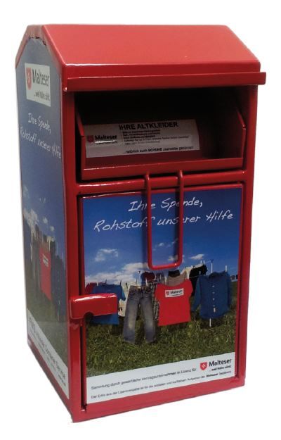 Jedes Jahr fallen in Deutschland über eine Million Tonnen an gebrauchter Kleidung an. Vieles ist zu schade, um im Müll zu landen. Umweltfreundlicher und sozial verantwortungsbewusster ist es, aussortierte und noch tragbare Kleidung zu spenden. Mit gutem Gewissen können Sie Ihre Kleidung abgeben, wenn auf dem Altkleidercontainer das Logo der Malteser zu sehen ist, das eine faire und extern überprüfte, karitative Verwertung und Mittelverwendung garantiert.