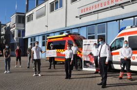 Der Verkaufserlös war für den Malteser Herzenswunsch-Krankenwagen gedacht und schon im vergangenen Herbst übergaben die Feuerwehrmänner eine erste Spende von 6500 Euro an die Malteser. „Wir haben dann tatsächlich noch bis lange ins Jahr 2020 die Kalender verkauft, so groß war die Nachfrage“, erzählt Markus Schneider von der Wachabteilung 3 begeistert von diesem Erfolg. Deshalb konnten sie auch erst jetzt den Gesamterlös bekanntgegeben: 9000 Euro für den Herzenswunsch-Krankenwagen hat der Verkauf der Kalender gebracht. Und weil diese Summe so großartig ist, kam die gesamte ehrenamtliche Malteser Stadtleitung in die Wache der Berufsfeuerwehr – und brachte den neuen Herzenswunsch-Krankenwagen mit, der jüngst seine Jungfernfahrt hatte. „Wir freuen uns so sehr über eure Unterstützung und die wunderbare Zusammenarbeit“, bedankte sich der Stadtbeauftragte Joachim Gold bei den Mitgliedern der Wachabteilung 3 und der Fotografin Laura Schumacher, die auch zur Spendenübergabe gekommen war. „Und wir wünschen Euch, dass der Kalender 2021 wieder so ein Ergebnis bringt.“ Der Erlös des neuen Kalenders geht an die Elterninitiative für leukämie- und tumorkranke Kinder Würzburg e.V.