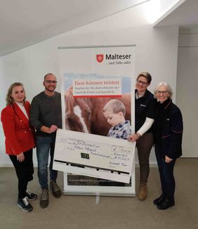 Statt Weihnachtsgeschenke für Geschäftspartner und Kunden hat die Firma Zaundirekt aus Knetzgau das dafür vorgesehene Budget von 500 Euro an die Malteser Kinderhospizarbeit in Schweinfurt gespendet. Manuela Keiger und Fabian Bischoff von der Geschäftsführung kamen persönlich, um sich von Koordinatorin Monika Spath und der ehrenamtlichen Kinderhospizhelferin Dorit Hemmerling über die Arbeit berichten zu lassen. Dabei erzählten beide vor allem von der Kindertrauergruppe "Tiere können trösten", für die das Geld besonders benötigt wird. Bei der Bewältigung von Trauer sei gerade bei Kindern und Jugendlichen der Kontakt zu Tieren sehr hilfreich. Die Malteser bieten in Unterfranken mehrere tiergestützte Trauergruppen an, die für die „betroffenen Familien natürlich kostenlos, für die Malteser aber trotz ehrenamtlicher Leitung sehr kostenintensiv sind", so Spath. Manuela Keiger und Fabian Bischoff zeigten sich beeindruckt von den Schilderungen und waren begeistert vom ehrenamtlichen Engagement für trauernde Kinder: "Wir haben die Spende genau an der richtigen Stelle platziert", freute sich Bischoff von Zaundirekt bei der Scheckübergabe.
