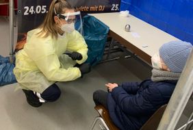 Würzburg. Damit hatte niemand gerechnet. Fast 40 Kinder eines Würzburger Gymnasiums hatten vor den Weihnachtsferien erfahren, dass sie als „Kontaktperson 1“ einzustufen sind und in häusliche Isolation mussten. Damit sie nicht auch den Heiligen Abend allein in ihrem Zimmer verbringen mussten, bat das Landratsamt die Malteser um Unterstützung. Spontan legten die Malteser, die in Ochsenfurt, Röttingen und Bergtheim zusammen mit der DLRG die Corona-Teststrecken für Angehörige von Altenheimbewohner betreiben, eine Extra-Schicht ein. „Das konnten wir doch nicht zulassen“, betont Johannes Albert, der bei den Maltesern für die Organisation der Teststrecken verantwortlich ist. Es fanden sich spontan etliche Mitarbeiter und zwei Ärzte, die am Morgen des Heiligen Abend in der Willi-Sauer-Halle in Bergtheim die Kinder testeten. Als alle Kinder negativ getestet waren und so die Erlaubnis bekamen, im Kreise ihrer Familie Weihnachten zu feiern, „war die allgemeine Erleichterung für uns alle deutlich spürbar“, erinnert sich der Einsatzleiter Albert mit einem Lächeln und ergänzt: „So konnten wir ein bisschen zur Weihnachtsfreude beitragen.“