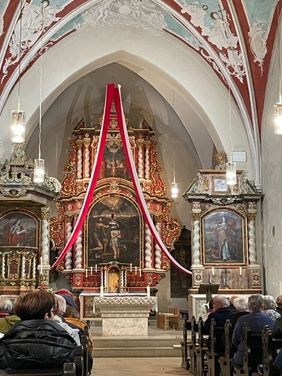 Wenn Himmel und Erde sich berühren - Dieses Jahresmotto war eines der Schwerpunkte im Wallfahrtsgottesdienst für kranke und behinderte Menschen, den Weihbischof Johannes Wübbe am 18.09.2022 in der voll besetzten Wallfahrtskirche Johannes der Täufer in Lage/Rieste hielt. Im Anschluss an den ansprechend musikalisch mit Chor und Orchester gestalteten Gottesdienst fand sich die Malteser Reisegruppe zur Wallfahrt nach Rom aus der Diözese Osnabrück zum Mittagessen im Saal neben der Kirche ein. Weihbischof Wübbe erschien noch einmal persönlich zu dieser Gruppe, um allen Pilgern der Romreise den Segen zur bevorstehenden Wallfahrt zu spenden. Dieser Segen soll kurz vor Reiseantritt am 01.10.2022 von einem Diakon bestätigt werden. Frau von Lengerich, engagierte Initiatorin dieser Wallfahrt, teilte jedem der anwesenden Mitreisenden noch ein Handout mit umfassenden Informationen aus. Gut gerüstet kann nun dem sicher mit vielen impulsgebenden und schönen Momenten einhergehenden Ereignis entgegengefiebert werden. Wir wünschen allen Reisenden und engagierten Helfern Gottes Schutz und viel Freude!