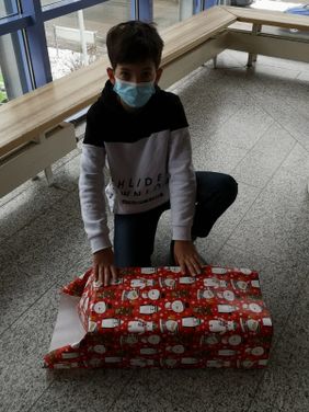 Organisiert wurde die Aktion von Malteser Ausbilderin Elke Schulte, die an der Schule seit fast vier Jahren den Schulsanitätsdienst betreut. „Die Schüler sind auf mich zugekommen und haben gefragt, ob sie wieder Hilfspakete packen könnten“, berichtet Schulte stolz. Schüler und Eltern sammelten Kuscheltiere und spendeten so viele Lebensmittel, dass Schulte gemäß der Packliste insgesamt 22 Pakete packen konnte. Coronabedingt verzichtete sie beim Zusammenstellen auf die Hilfe der Schüler, um unnötige Kontakte zu vermeiden. Anschließend aber packten fünf Mitglieder der Schulsanitätsdienstgruppe die Pakete mit dem vorbereiteten Geschenkpapier liebevoll ein, trugen sie aus dem 1. Stock zum Parkplatz und halfen beim Einladen in den Malteserbus. „Die haben alle mit großer Freude geholfen und freuen sich, Familien in Rumänien, denen es nicht so gut geht, helfen zu können“, sagt Schulte.