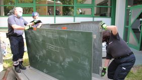 Rosenheim/Berchtesgadener Land. Die Berufliche Oberschule (FOSBOS) Rosenheim spendet den Maltesern für die Auslandshilfe in Rumänien insgesamt 36 klassische Tafeln. Diese werden mit Hilfe einer Digitalisierungsförderung von Bund und Ländern durch große digitale Medientafeln ersetzt. In einer gemeinsamen Aktion von Mitarbeitern der Firma Zosseder, ehrenamtlichen Helfern der Rosenheimer Malteser und dem Leiter der Malteser Auslandshilfe im Berchtesgadener Land, Michael Soldanski, wurden 25 der alten Tafeln samt Leitschienen bereits abgebaut und in den LKW der Hilfsorganisation verladen. 11 weitere folgen zum Ende des Schuljahres.