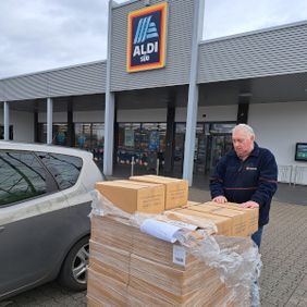 Die gespendeten FFP2-Masken sind aus dem Eigenbedarf der Firma ALDI SÜD, die während der Corona-Pandemie für die Mitarbeiter*innen gekauft wurden. Diese werden nun vom Malteser-Logistikzentrum Mülheim auf weitere Standorte der Malteser Ruhrgebiet verteilt.