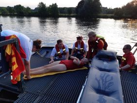 Neben der Wasserrettungsübung fand bei bestem Wetter selbstverständlich auch ein Kennenlernen sowie der Austausch in der DLRG Ruhrrettungsstation statt. In Kleingruppen konnten später Stationen abgearbeitet werden. Hier ging es beispielsweise um das korrekte Werfen eines Rettungsringes oder das Heranfahren mit dem Rettungsboot an eine hilflose Person.