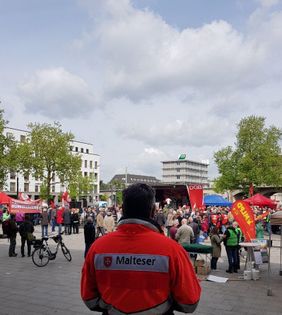 Wie auch in den vergangenen Jahren findet heute die traditionelle Maikundgebung vom Deutschen Gewerkschaftsbund (DGB) statt. Auch die Mülheimer Malteser sind in diesem Jahr wieder mit Hilfskräften vor Ort, um die Veranstaltung mit dem Motto „Europa. Aber jetzt richtig!“ sanitätsdienstlich zu begleiten.