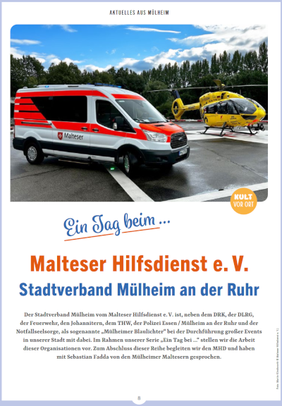 Wir freuen uns, in der neuesten Ausgabe des "KULT - Stadtmagazin" vertreten zu sein! Unser engagiertes Mitglied Sebastian Fadda gibt euch einen spannenden Einblick in die vielfältigen ehrenamtlichen Angebote, die wir an unserem Standort in Mülheim anbieten.