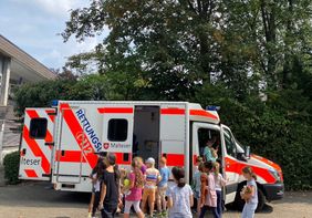 20. August 2022 Gestern waren Gruppenleiterinnen der Mülheimer Malteser Jugend mit unserem Rettungswagen zu Gast an der Katharinenschule im Mülheimer Stadtteil Speldorf.