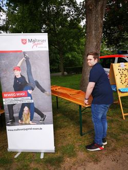 Die Mülheimer Malteser sind mit Sanitätskräften und einem Rettungsmittel derzeit zu Gast auf dem Hans-Böckler-Platz. Hier findet das diesjährige Quartiersfest statt.