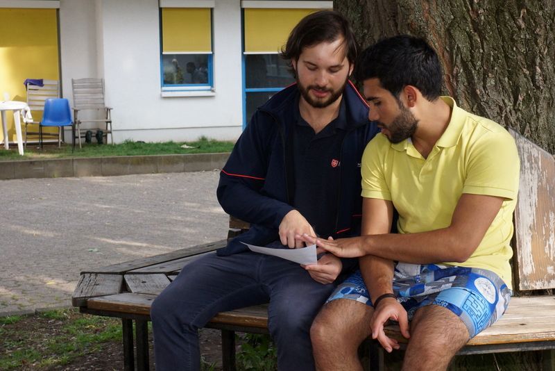 In Deutschland gibt es viele Regeln bei der Arbeitssuche. Du triffst regelmäßig einen ehrenamtlichen Bewerbungsbegleiter, der dir unser System erklärt. Er hilft dir dabei, freie Stellen zu finden, Bewerbungen zu schreiben und Bewerbungsgespräche vorzubereiten.