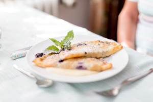 Kaiserschmarrn mit Rosinen, dazu fruchtiges Zwetschenkompott