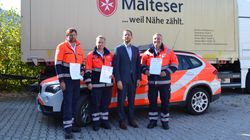 Dreifaches 20-jähriges Dienstjubiläum im Malteser Rettungsdienst Flughafen München/Rosenheim/Traunstein. Langjährige Erfahrung, hohe Fach- und Führungskompetenz und 20 Jahre Dienstzugehörigkeit – das verbindet die Malteser Rettungsdienstmitarbeiter Wolfgang Bremberger, Ernst Schütz und Volker Schiechl.