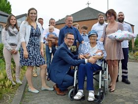 Denn Familie Böttcher ist bekannt in der katholischen Gemeinde St. Paulus. Drei erwachsene Söhne und eine Tochter hat Renate Böttcher mit ihrem Mann Claus und dazu eine große Liebe zur Kirche. Jahrelang begleitete Renate Böttcher mit ihren Kindern die Festgottesdienste musikalisch, sie an der Gitarre, die Kinder mit Flöte und Trompeten. Zwei Söhne dienten als Ministranten. „Es war ihr sehr wichtig, dass Jonas getauft wird“, sagt denn auch ihr Sohn Daniel Böttcher, der Vater des Täuflings. „Schön, dass sie das noch erleben kann.“