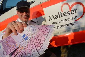 Wolfsburg (mhd). Er hat es wieder getan und dieses Mal an die Malteser gedacht: Am Mittwochmorgen, 29. August, gab ein Unbekannter 10.000 Euro in der Geschäftsstelle der „Wolfsburger Nachrichten“ ab. Das Geld sei für den Herzenswunsch-Krankenwagen der Malteser, so der Unbekannte, der schon mehrfach anonym Geld für einen guten Zweck gespendet hat. Am frühen Abend schon hielt Andreas Nickel, ehrenamtlicher Geschäftsführer der Malteser Wolfsburg, 20 violette 500-Euro-Geldscheine in der Hand.