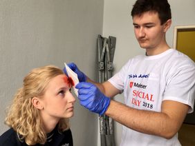 „Der Parcours macht Spaß und ist echt lehrreich“ findet Michael, ein Azubi der Stadtwerke. „Hier kann ich sehr praxisnah Erste-Hilfe üben. Die Wunden sehen total echt aus und die Darsteller an den Stationen spielen die Fälle realistisch nach. Nach jeder Station bekommen wir ausführlich erklärt was gut geklappt hat und was wir noch besser machen können. Ich nehme heute wirklich viel mit.“ Gemeinsam mit seinen Azubi-Kollegen hatte er im Februar 2018 bereits an einem Ersten-Hilfe-Kurs der Malteser teilgenommen.