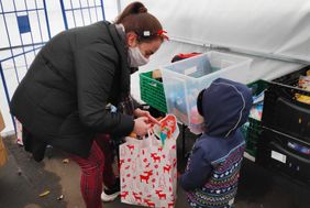 Die prall gefüllten Tüten wurden nun an leuchtende Kinder-Augen verteilt. Je nach Altersgruppe legte das Helfer-Team noch Sporttaschen oder Kopfhörer zum Homeschooling bei, die von Amazon gespendet wurden. Gemeinsam mit ihren Eltern warteten die Kinder trotz winterlichen Temperaturen brav im Hof der Tafel, bis jeder seine Nikolaus-Überraschung entgegennehmen konnte. Einige übrig gebliebene Tüten wurden kameradschaftlich an die Tafel Worms weitergegeben.