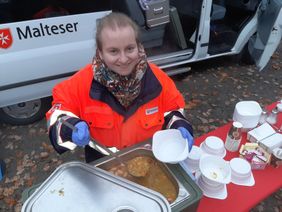 Ein schöner Tag, alle Anstrengungen und Mühen sind vergessen und das machen wir jetzt an jedem Samstag von 13:00 bis 14:00 Uhr auf dem Festplatz an der Horster Straße: Eine warme Mahlzeit und heiße Getränke für Bedürftige und natürlich auch das eine oder andere nette Gespräch. Danke an alle Malteser-Kollegen, die sich heute die Zeit dafür genommen haben.