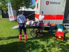 Würzburg. Die Coronapandemie hat auch das ehrenamtliche Engagement beim Würzburger Malteser Hilfsdienst ziemlich ausgebremst. „Keine Veranstaltungen, kein Sanitätsdienst“, bringt es der ehrenamtliche Stadtbeauftragte Joachim Gold auf den Punkt. Es sei eine „entsetzlich lange Durststrecke“ für die Sanitäter gewesen, deren Passion es ja sei, bei Konzerten, Sportevents und anderen Veranstaltungen Menschen zu helfen, die sich verletzten oder nicht wohlfühlten. „Umso mehr haben wir uns gefreut, als klar war, dass das Umsonst und Draußen-Festival stattfinden würde“, bestätigt Leonie Fröhner, die verantwortlich für den Einsatz auf den Talavera-Wiesen war. Es wird traditionell von den Maltesern abgesichert, so dass es normalerweise eine gewissen Routine gibt. Da sich die Vorgaben für den Veranstalter aber immer wieder geändert hätten, „mussten auch wir bei der Planung sehr flexibel sein, denn ein Stehkonzert wird natürlich anders bewertet als ein Sitzkonzert.“, so Fröhner, die sich schon seit Jahren bei den Maltesern ehrenamtlich engagiert. An den vier Konzerttagen zuzüglich Auf- und Abbau kamen über 400 Helferstunden zusammen, die 34 Ehrenamtlichen – von der Einsatzsanitäterin bis zum Notfallsanitäter – leisteten. „Am Sonntag haben wir tagsüber sogar noch zusätzlich drei Schulsanitäter ‚schnuppern‘ lassen“, erzählt Leonie Fröhner von dem insgesamt ruhigen Einsatz. Lediglich acht Hilfeleistungen waren zu vermelden über die gesamte Zeit. Trotzdem war die Stimmung sehr gut, denn „Hauptsache mal wieder aktiv sein dürfen“, waren sich alle einig. Die freie Zeit nutzten die Sanitäterinnen und Sanitäter dazu, zum Beispiel den Umgang mit einer Katastrophenschutztrage zu üben oder das richtige Funken zu trainieren.