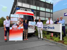 Würzburg/Höchberg. Große Freude bei den Maltesern, denn die Vogel Druck und Medienservice GmbH in Höchberg übergab zu Beginn der Sommerferien insgesamt 2.500 Euro für zwei wichtige Malteserdienste: den Herzenswunsch-Krankenwagen und das Kinderpalliativteam. Grundlage für diese Spende war das Betriebsfest Ende Juli, bei dem jedes Essen und Getränk für je einen symbolischen Euro verkauft wurde – für den guten Zweck. Die dabei eingenommene Summe wurde durch die Geschäftsleitung auf den übergebenen Spendenbetrag aufgestockt. „Damit schenken Sie kleinen und großen Menschen am Lebensende noch mal einen Lichtblick und ermöglichen schöne Momente für alle Beteiligten“, bedankten sich der Malteser Stadtbeauftragte Joachim Gold und Dr. Julia Schwinn vom Malteser Kinderpalliativteam beim Geschäftsführer Jörg Kuchenmeister und dem Betriebsratsvorsitzenden Stefan Ott für die großzügige Unterstützung. Die medizinisch-pflegerischen Leistungen des Kinderpalliativteams seien zwar durch die Krankenkassen finanziert. „Aber die Familien brauchen mehr als das“, erklärte Schwinn. Zusätzliche Angebote wie Musik- oder Aromatherapie, die eine „beruhigende und nachweislich heilsame Wirkung“ haben, könnten so weiterhin angeboten werden, freute sich die Kinder- und Jugendärztin. Das Kinderpalliativteam betreut derzeit rund 50 Kinder mit lebenszeitverkürzenden Krankheiten in ganz Unterfranken in ihrem häuslichen Umfeld. Der Stadtbeauftragte Joachim Gold und sein Stellvertreter Michael Kiesel erzählten vom Herzenswunsch-Krankenwagen, mit dem die Malteser Menschen am Lebensende kostenfrei noch einen Wunsch erfüllen. Nicht nur große Wünsche seien wichtig wie zum Beispiel der Besuch im Fußballstadion oder eine letzte kleine Fahrt ans Meer, sondern auch viele kleine Anliegen wurden in den letzten fünf Jahren an die Malteser herangetragen, die aufgrund des Krankheitszustandes ohne medizinische Begleitung nicht möglich ist. Da geht es um den Kaffee in der eigenen Wohnung, den Besuch am Grab der Ehefrau oder die Teilnahme an der Hochzeit der eigenen Tochter.