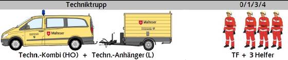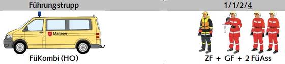 Die Einsatzeinheit gliedert sich dabei in 4 Aufgabenbereiche: Führung, Sanität, Betreuung und Technik.